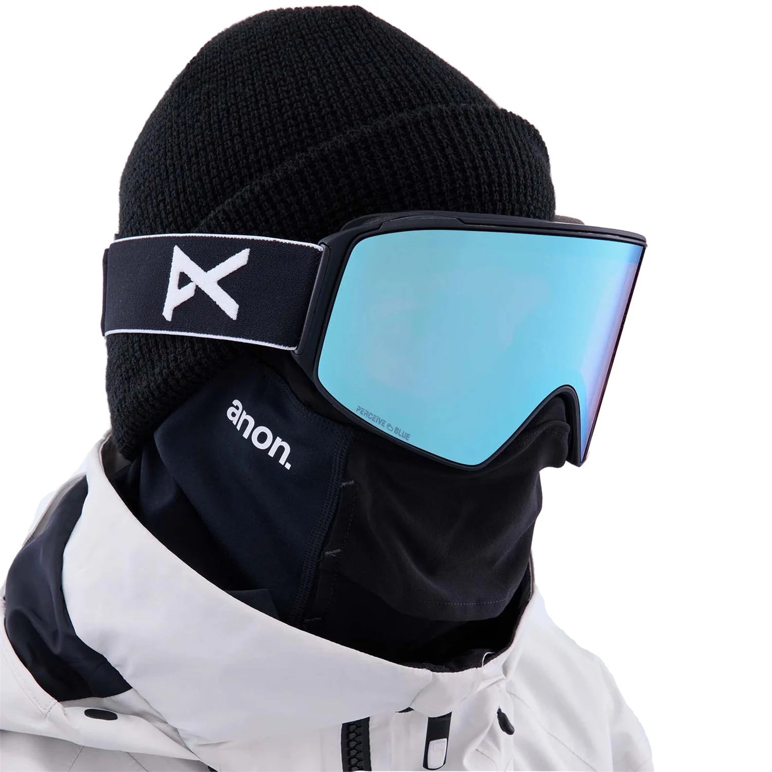 Anon M4 Cylindrical Goggles & MFI Face Mask & Spare Lens Low Bridge Fit Black / Perceive Variable Blue Lens