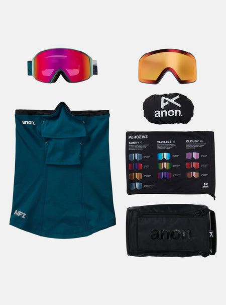 Anon M4S (Cylindrical) Goggles & MFI Face Mask & Spare Lens 2026 - Family Tree / Perceive Sunny Red Lens