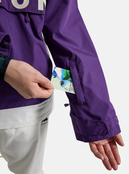 Staying dry and warm was never this easy for 90s shredders. The women's Burton Frostner Anorak is the only shell you need for a full season of riding. From chill midwinter days to mild late-season sessions, just layer up and zip up to match the weather of the day. It's packed with on-snow features to keep you riding more and fiddling with you layers less.