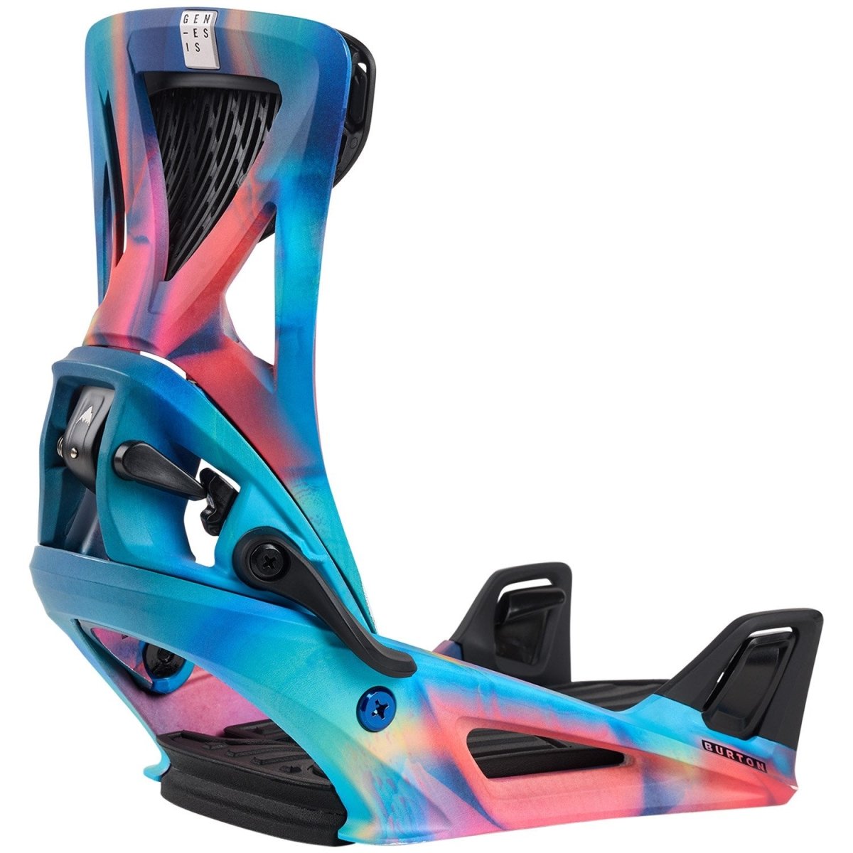 Supercharge your suspension for a responsive ride with the men's Burton Step On® Genesis Re:Flex Snowboard Bindings. They cradle your heel in complete suspension for increased response and reduced vibration. Maximum cushioning and the simplicity of Step On make for playful bindings that'll have you fussing less and riding longer.